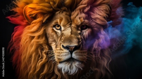 © Dang, Naklejka premium animal Lion portrait with Generative AI.