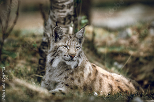 Obraz premium Animal portrait of a beautiful lynx outdoors in the forest. Wildlife,...