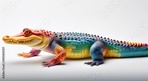 © behzadillustrations, Naklejka premium animal, reptiles, coloré, isolé, blanc, faune, nature, queue, vert, crocodile, sauvage, fond blanc, triton, petit, gros plan, brun, noir,