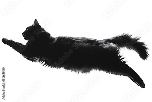 Obraz premium animal silhouette art, cats dark outline levitates against a white backdrop