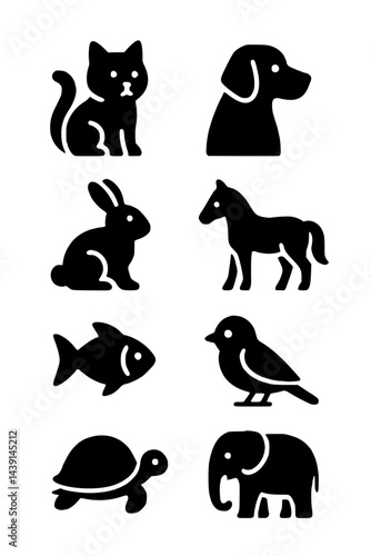 © LucaAr, Fototapeta premium Animal Silhouette Collection. animal, silhouette, pet, cat, dog, rabbit, horse, fish, bird, turtle, elephant, wildlife, mammal, aquatic, avian, reptile, domestic, farm, jungle, zoo, minimalist, black,