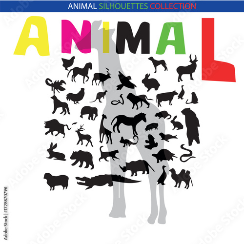 Fototapeta premium Animal Silhouette Collection – Wildlife, Pets, Birds, and Marine Creatures