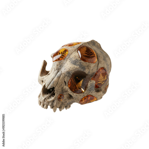 © Thao, Fototapeta premium Animal Skull with Embedded Amber Stones