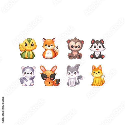 © pasakorn, Naklejka premium animal stickers with Thai phrases, sticker set for messaging app