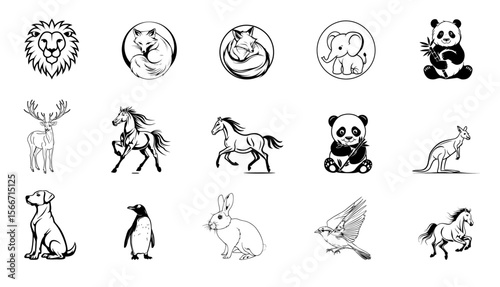 Naklejka premium Animal Vector Icon Set – Line Icons of Wild, Farm, Sea, and Pet Animals...