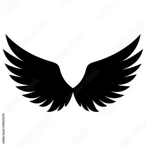 Fototapeta premium Animal wing silhouette vector, Wings vector illustration, Black & white wing vector art design isolated.