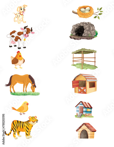 Obraz premium animals and their homes, match the following, exercises,