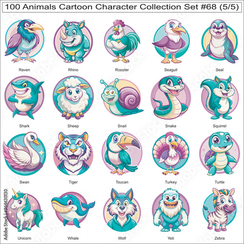 Obraz premium Animals Cartoon Character Collection Set of 100 Isolated Animals Part 5