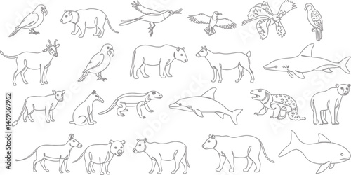 © Tharindu, Fototapeta premium 24 Animals: Continuous Line Drawing