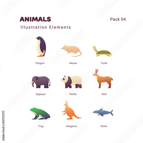 © Victoruler, Naklejka premium Animals flat color illustration elements icons