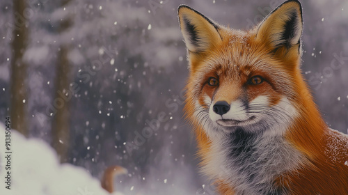 Fototapeta premium Animals in snowy settings, such as a red fox against a snowy backdrop or...