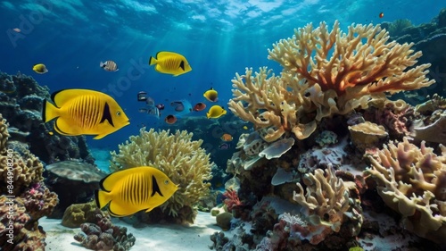 © Luidmila Spot, Naklejka premium Animals of the underwater sea world. Ecosystem. Colorful tropical fish. Life in the coral reef.