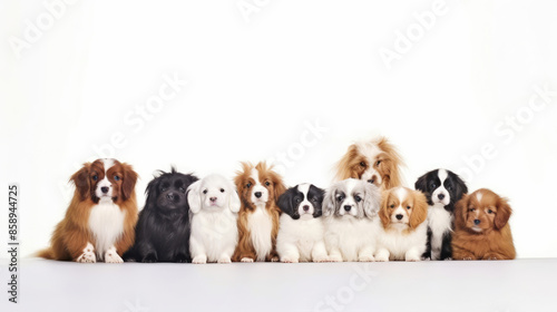 © Fang, Obraz premium Animals pets guinea pigs banner panorama long - Collection of funny cute lying, sitting white brown dutch guinea pig (caviidae) family with young baby , isolated on white background, Generative AI