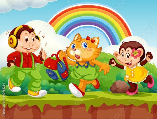 © GraphicsRF, Obraz premium Animals playing in a park