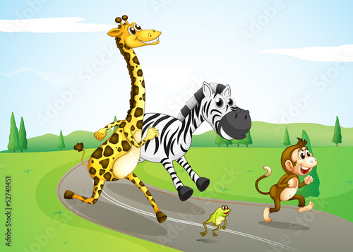 Naklejka premium Animals running at the street