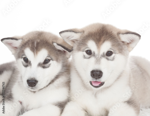 © erainbow, Obraz premium Animals. Two puppies Husky white isolated