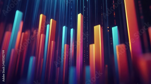 © aan, Obraz premium Animated business bar graphs with ascending arrows on a dark blue background