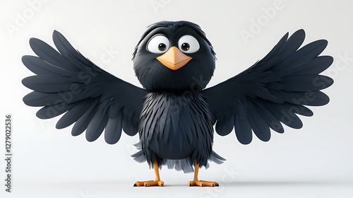 Naklejka premium Animated cartoon raven spreading wings studio digital art white background