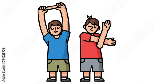 Obraz premium Animated Figures Illustrating Stretching Routines and Physical Wellbeing...