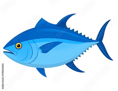 © Kulet, Obraz premium Animated illustration of a tuna fish in shades of blue with a yellow eye