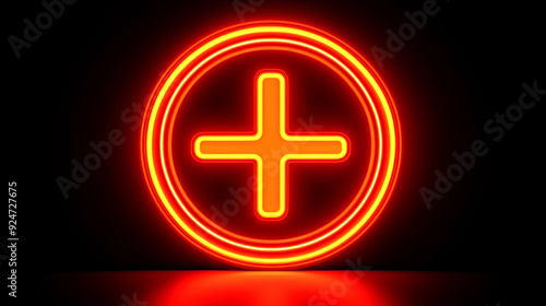 © JVLMediaUHD, Fototapeta premium Animated neon health shield icon illuminated against a dark background