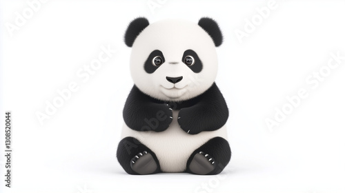 Naklejka premium Animated Panda's Playful Charm: An adorable animated panda bear, with its signature black and white fur, sits cutely and invites viewers into a world of playful exploration and joyous delight.
