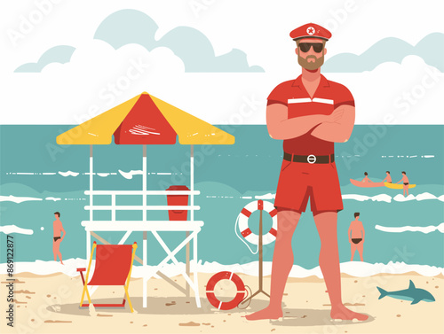 Fototapeta premium Animated Sentinels: Vigilant Lifeguards Ensure Safety at the Azure Coast