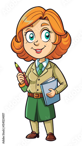 Fototapeta premium Animated teacher holding book and pen.
