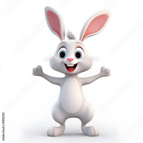 Obraz premium Animated white rabbit character with cheerful expression and outstretched...