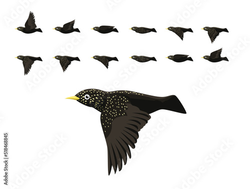 © bullet_chained, Fototapeta premium Animation Common Starling Flying Cute Cartoon Vector Illustration