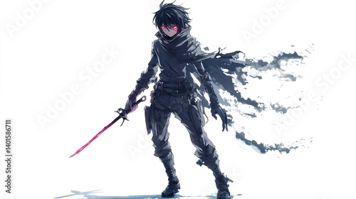 Fototapeta premium Anime boy with red eyes, holding sword.