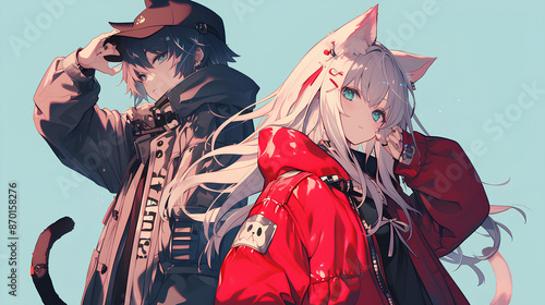 © Adja Atmaja, Fototapeta premium anime boys and girls with animal ears trendy outfits