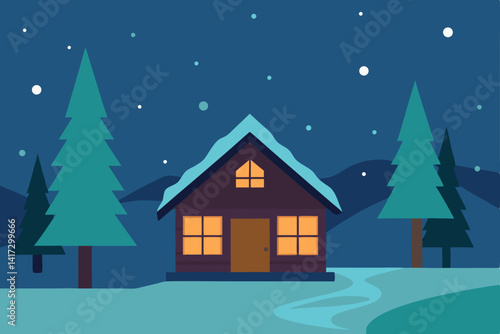 Naklejka premium anime-cabin-in-the-woods-during-snowfall