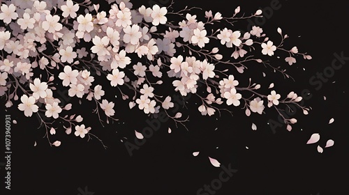 © Dan, Fototapeta premium anime cherry blossom branch, pink flowers, dark background, aesthetic wallpaper