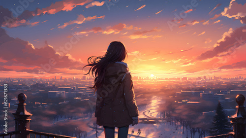 © Demencial Studies, Fototapeta premium anime girl in beautiful snow scenery