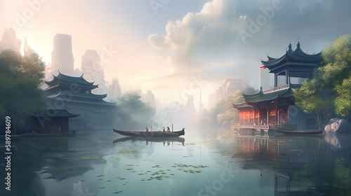 © Boinah, Fototapeta premium Anime style abstract background, generative ai