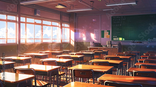 Fototapeta premium anime style background, game background, classroom, school