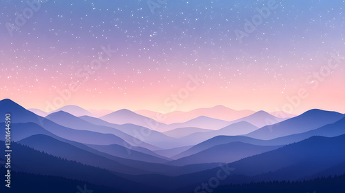 © Jiajia, Fototapeta premium Anime Style Mountain Range Under Starry Sky at Twilight - Tranquil Nature Landscape