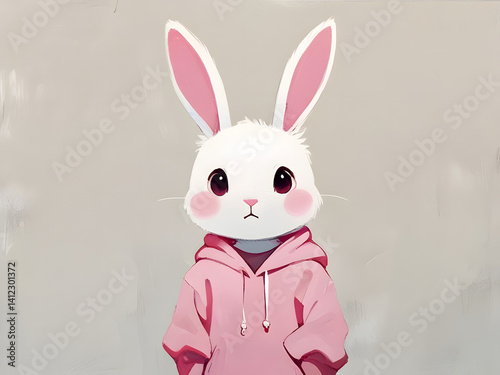 Fototapeta premium Anime Style Rabbit Portrait, Cute Bunny Illustration