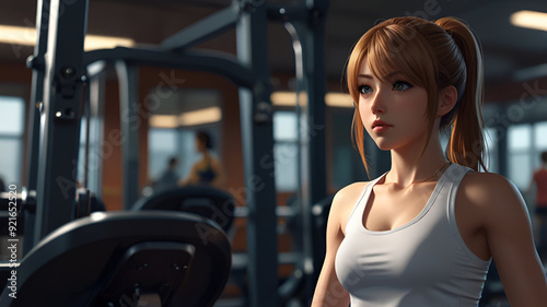 © AMORNRAT, Obraz premium anime trainer fitness illustration.