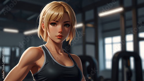 © AMORNRAT, Obraz premium anime trainer fitness illustration.