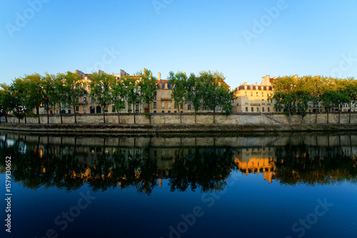 © hassan bensliman, Naklejka premium Anjou quai and Seine river bank in the 4th arrondissement of Paris city