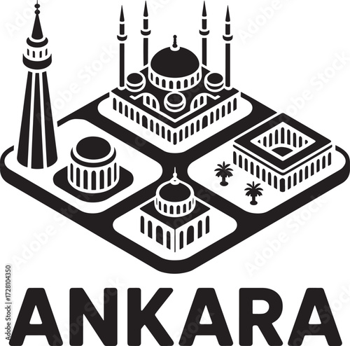 © lok0077, Fototapeta premium Ankara city skyline isometric icon vector illustration with landmarks and urban architecture