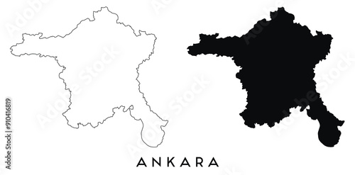 © Alex, Naklejka premium Ankara map outline and black silhouette vector