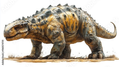 © Stocker, Obraz premium Ankylosaurus dinosaur on a white background. Generative AI