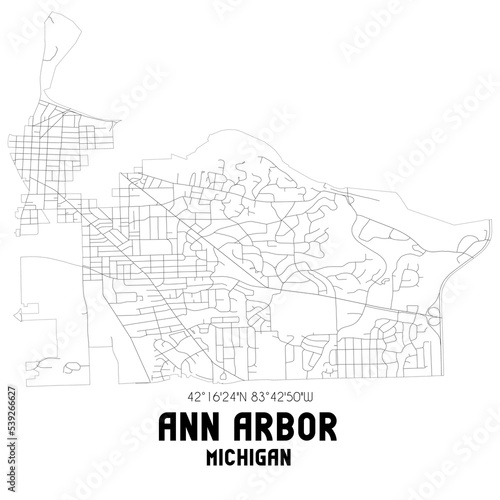 Obraz premium Ann Arbor Michigan. US street map with black and white lines.