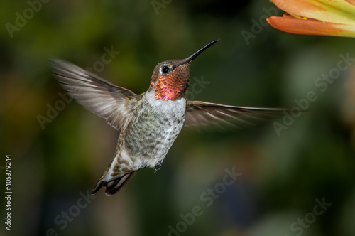 © Nick Taurus, Fototapeta premium Anna's Hummingbird (Calypte anna) male in garden, Los Angeles, California, USA