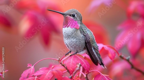© Tuong, Obraz premium Anna's Hummingbird on Japanese Maple Branch in Benicia, CA