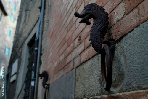 Obraz premium Anneau médiéval en fer pour attacher les chevaux dans une rue de Sienne