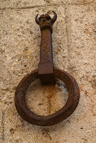 Obraz premium Anneau médiéval en fer pour attacher les chevaux dans une rue de Sienne